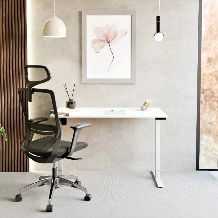 Biurko elektrycznie regulowane zaprojektowane z myślą o efektywności – zachęca do częstych zmian pozycji, wspierając Twoją wydajność. Jego ponadczasowy wygląd będzie pasował zarówno do klasycznych, jak i nowoczesnych wnętrz.