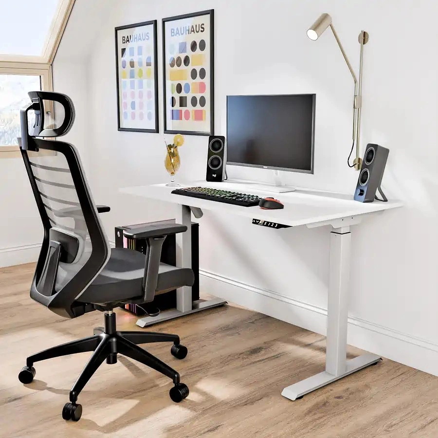 Biurko gamingowe z elektryczną regulacją wysokości – kompaktowe, ergonomiczne i idealne do mniejszych pomieszczeń. Płynna praca, cicha konstrukcja, porty USB-A i USB-C.