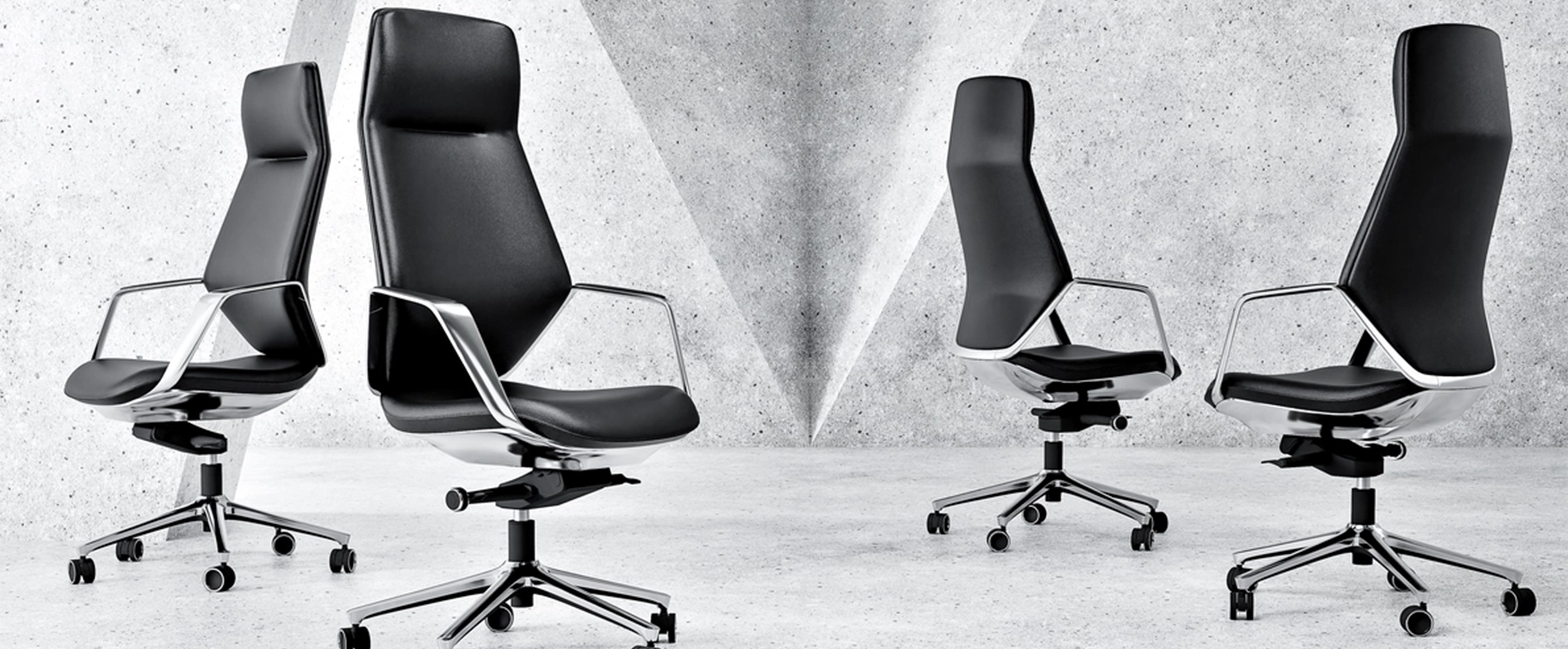 - W fotelach gabinetowych konstrukcja opiera się na elementach z litego, polerowanego aluminium, które pełnią jednocześnie funkcję stelaża i podłokietników. Zapewnia to maksymalną solidność oraz tworzy spójny, prestiżowy design.