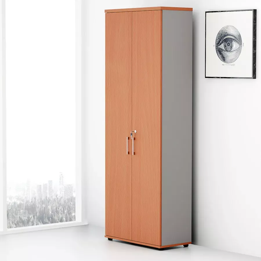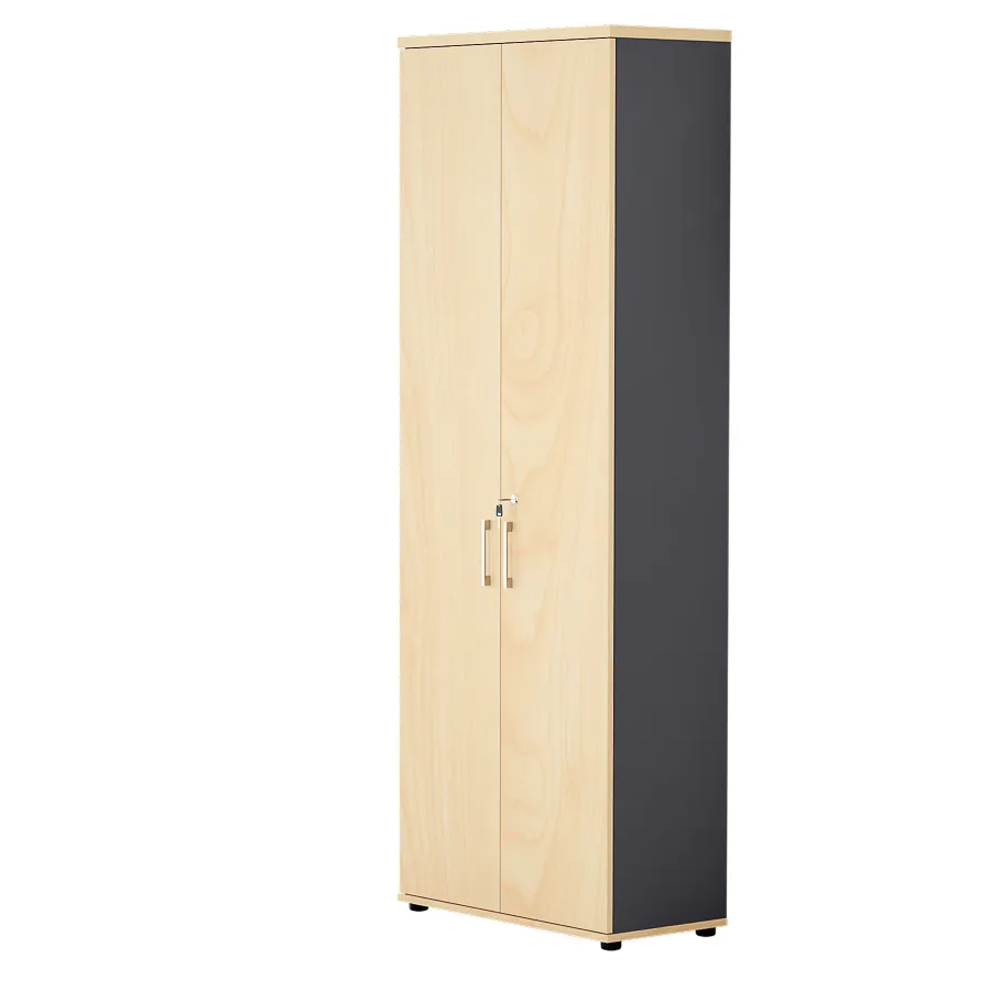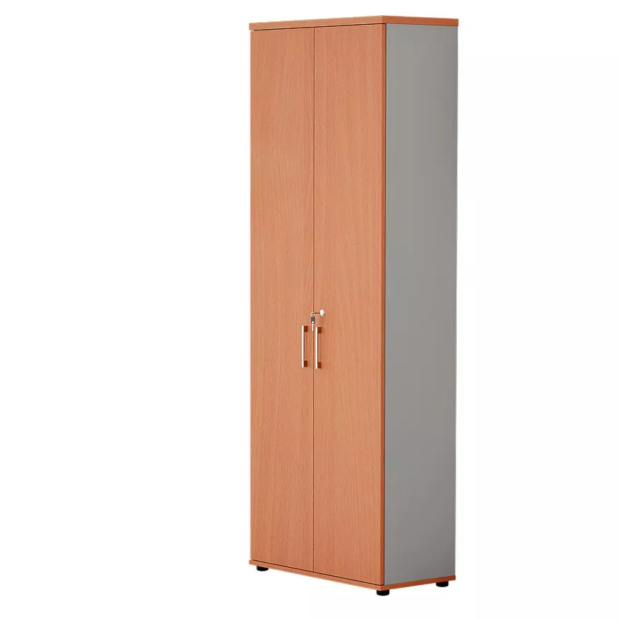Wysoka zamykana szafa biurowa na segregatory z drzwiami skrzydłowymi. Przeznaczona zarówno do biura, jak i miejsc użyteczności publicznej. Wykonana z wysokiej jakości płyty laminowanej. Wyposażona w 5 solidnych, zabezpieczonych przed wysuwaniem półek. Przestrzenie między półkami zostały dopasowane do wysokości segregatorów, co pozytywnie wpływa na odpowiednie przechowywanie oraz segregację dokumentów.