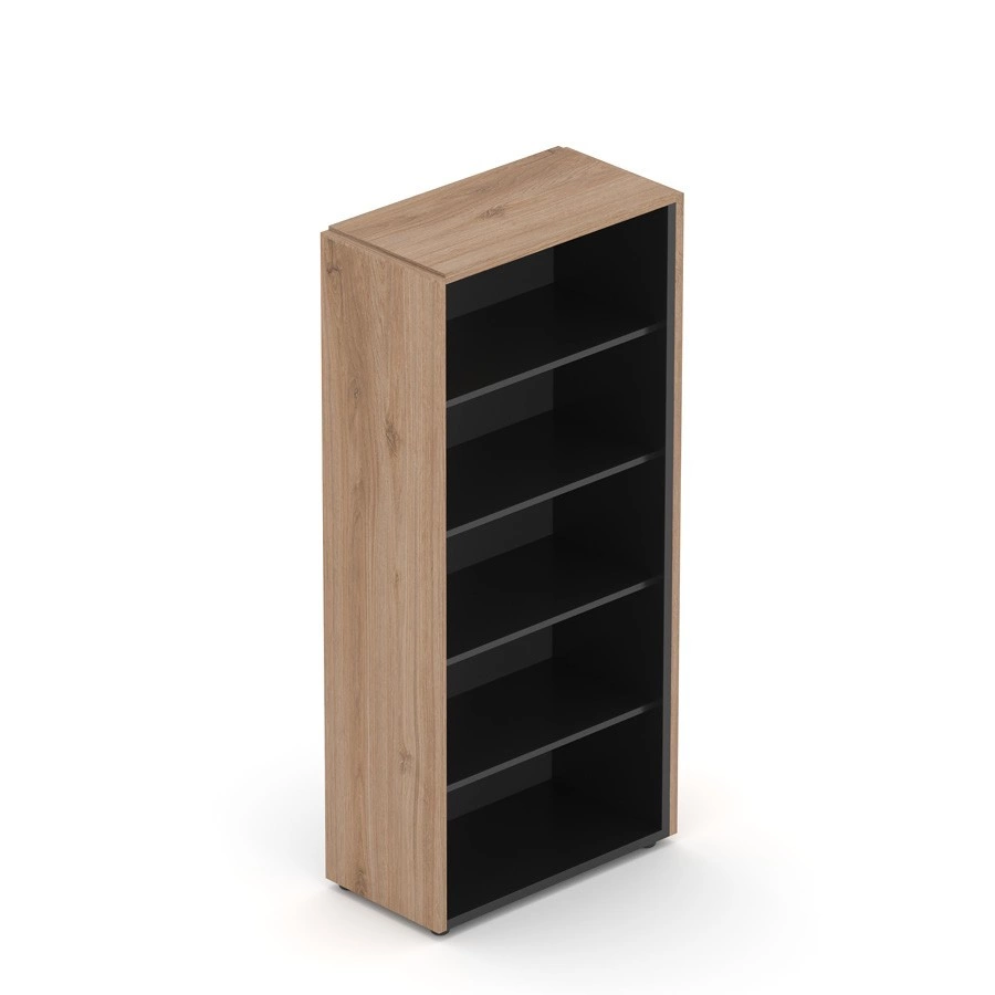 Otwarty regał aktowy Exo - przeznaczony do biura, gabinetu, eleganckich firmowych pomieszczeń. Posiada 5 poziomów, na których można przechowywać dokumenty (również w segregatorach - odstępy między półkami zostały dopasowane do ich wysokości). Produkt został wykonany z trwałej płyty laminowanej, posiada dwa korpusy (zewnętrzny oraz wewnętrzny). Stanowi połączenie klasyki z nowoczesnością.