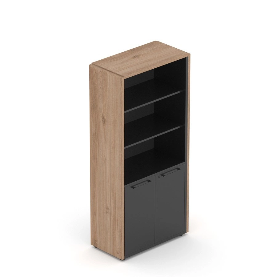 Półotwarta, wysoka szafa aktowa Exo - przeznaczona do biura, gabinetu, eleganckich firmowych pomieszczeń. Posiada 5 poziomów, na których można przechowywać dokumenty (również w segregatorach - odstępy między półkami zostały dopasowane do ich wysokości). Produkt został wykonany z trwałej płyty laminowanej, posiada dwa korpusy (zewnętrzny oraz wewnętrzny). Stanowi połączenie klasyki z nowoczesnością.