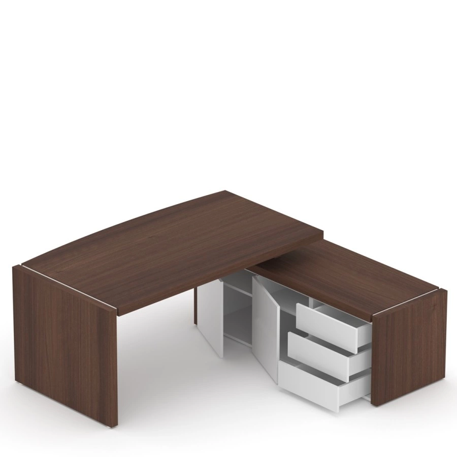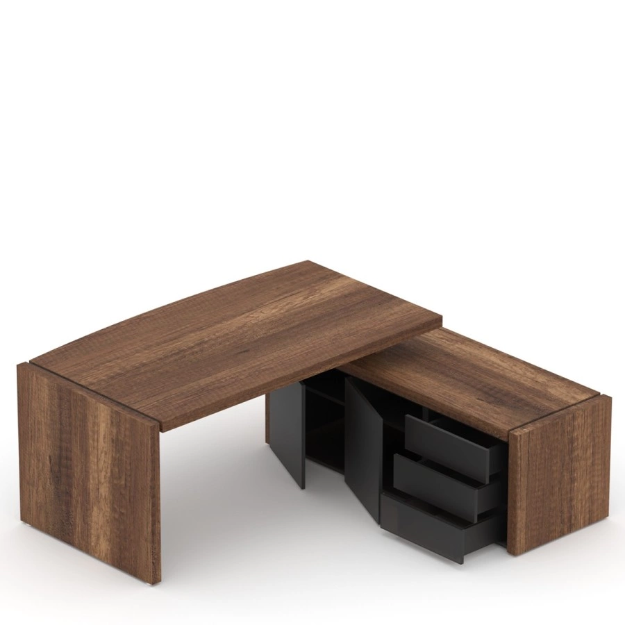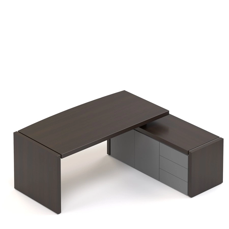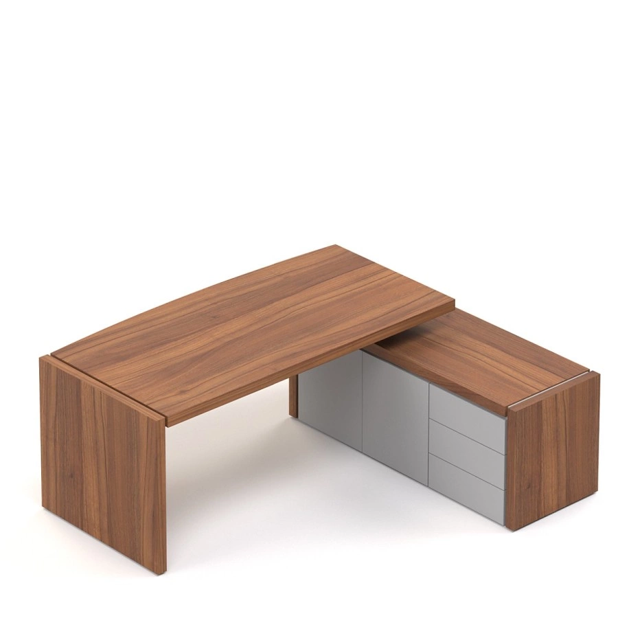 Zestawy biurek z komodami najczęściej goszczą w nowoczesnych, przestronnych pokojach menedżerów, ceniących dobry design i przemyślane rozwiązania funkcjonalne. Komoda biurkowa zwiększa przestrzeń roboczą blatu biurka, stwarza możliwość przechowywania wszystkich potrzebnych materiałów w zasięgu ręki. Ponadto dopełnia stylistycznie bryłę gabinetowego biurka, podkreślając jego monumentalność. Komody Fundamental są dostępne w kilku wariantach funkcjonalnych, od prostych modeli z półkami przesłoniętymi frontem przesuwnym po bardziej urozmaicone z półkami zamykanymi drzwiami oraz szufladami. Ciekawym i często wybieranym do gabinetów wieloosobowych wariantem jest komoda dwustronna, przeznaczona dla 2 osób, łącząca w praktyczny i efektowny sposób stanowiska pracy.