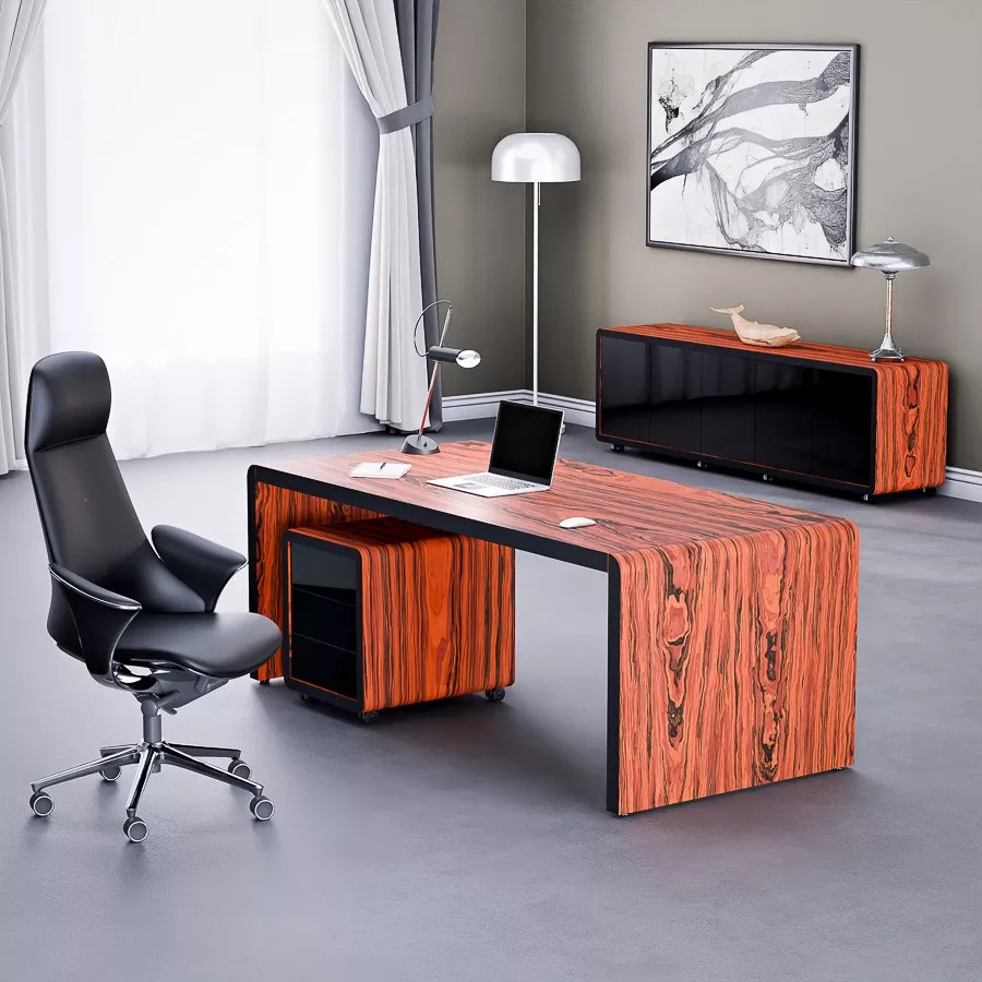 Fornirowany komplet mebli biurowych to świetna propozycja dla osób, które cenią porządek, funkcjonalność i szyk w miejscu pracy. Tego typu wyposażenie doskonale sprawdza się w prestiżowych gabinetach zarządczych, gdzie liczy się zarówno reprezentacyjny wygląd, jak i umiejętne wykorzystanie dostępnej przestrzeni. Solidne, wysokiej klasy materiały gwarantują trwałość oraz odporność na intensywne użytkowanie, a jednocześnie nadają wnętrzu nowoczesny, profesjonalny charakter.